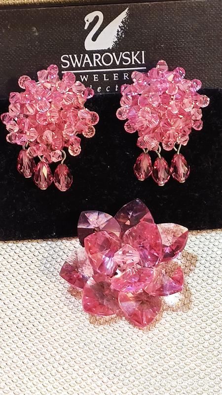 ⚜️Чудові, рідкісні прикраси:брошь та кліпси.⚜️Прикраси виготовлені з дуже ніжного, рожевого скла.⚜️Кліпси достатньо великі,з рухомими підвісками. ⚜️Брошь у формі-лотоса. ⚜️Прикраси, виглядають чудово. ⚜️Приїхали з Франції. ⚜️Ціна,за дві прикраси.📌Оплата на картку. 📌