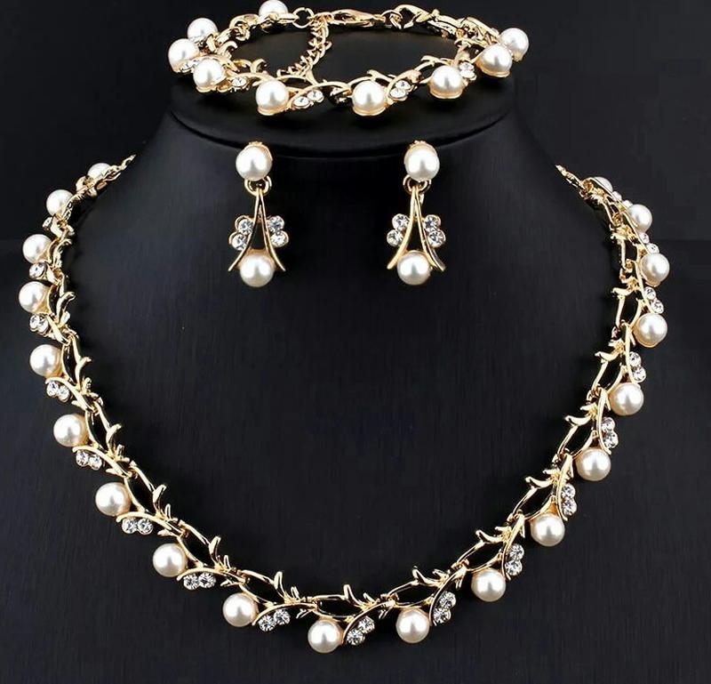 Прекрасный набор колье , серьги и браслет в золотом цвете с жемчужинами и кристаллами "сваровски". Королевские украшения для прекрасной дамы. Смотрится полностью, как ювелирный! В реальности даже намного красивее, чем на фото! Длина колье 38 см + 10 см запасная цепочка для регулировки.Серьги с удобными и мягкими силиконовыми фиксаторами.