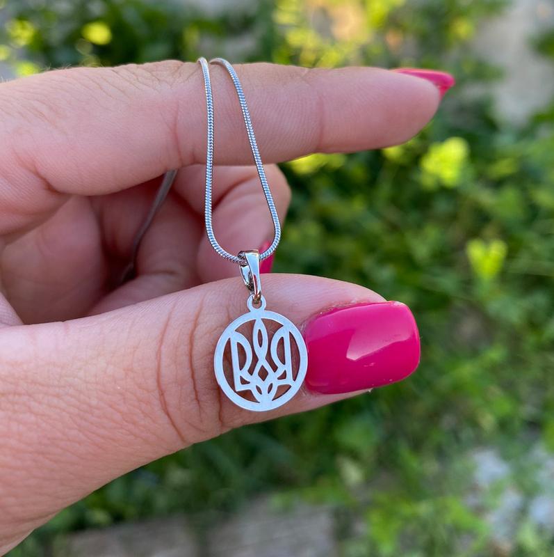Набор герб (воля) тризуб цепочка снейк 60 см + кулон круг 19к (цвет 925п) 78-215
