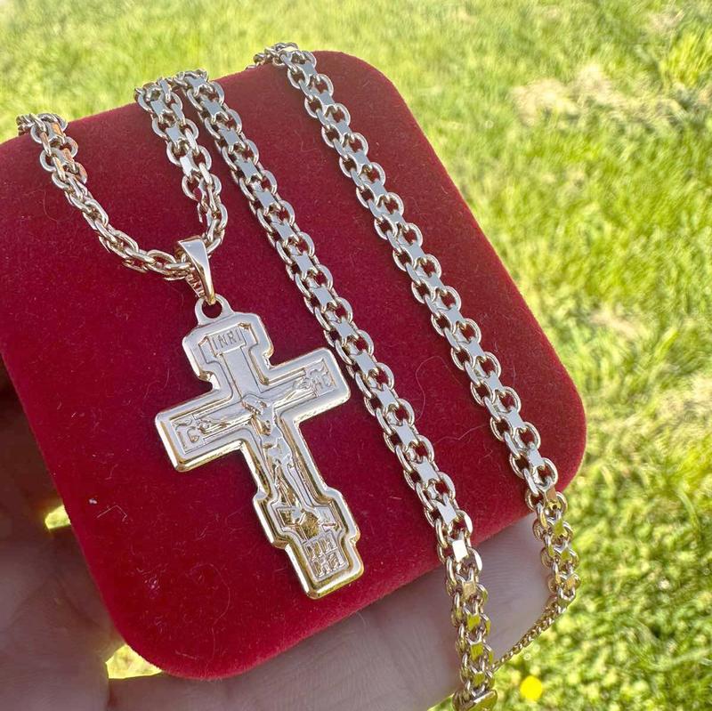 Набор цепочка xuping 45 см (4 мм) + крестик 3 см ( 18к цвет золота 585п) 77-318