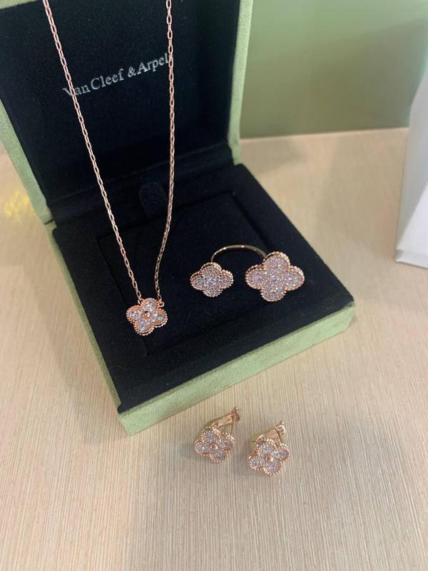 Ван клиф браслет, подвеска и серьги / van cleef клевер в позолоте