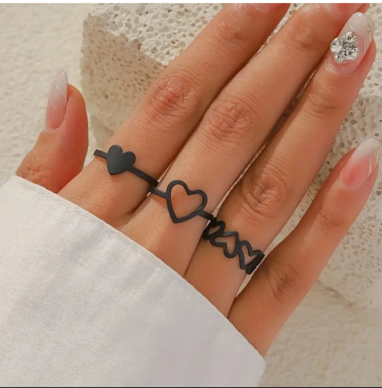 Цвет:черный Покрытие – матовое Состав: бижутерный сплав Размеры: 17й, 18й (регулируются) Набор: 3шт Доставка: Новая Почта, Укрпочта