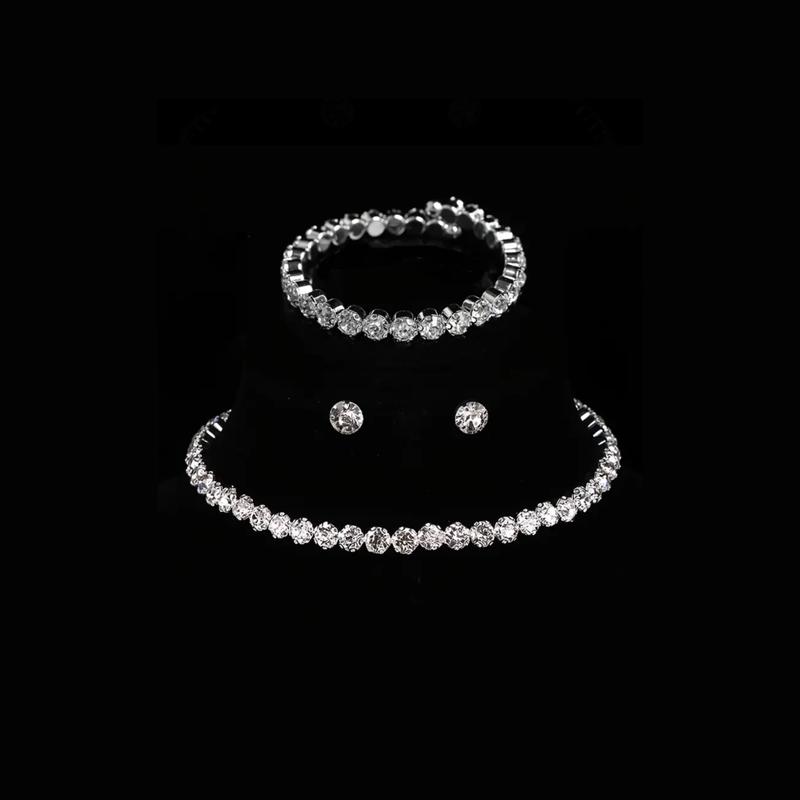 Набір комплект прикрас із яскравими кристалами чокер, браслет і сережки