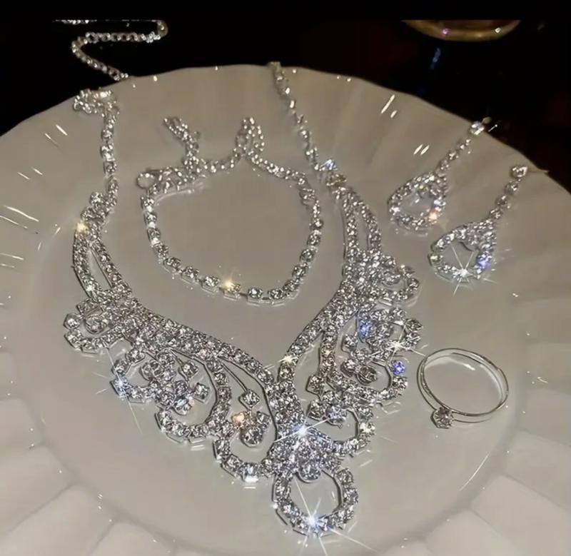 Елегантний набір преміум класу, кольє, браслет, сережки, каблучка