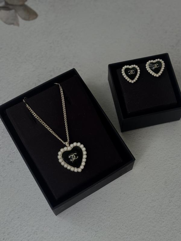 Набір біжутерії шанель з сердечком: сережки та підвіска
