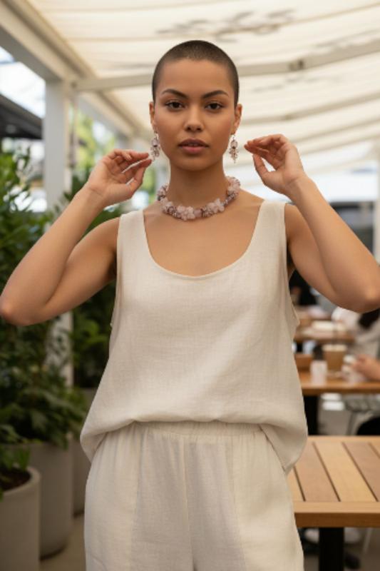 Прикраса ручної роботи колье та сережки зроблені з натурального каміння рожевий кварц, велика рубка рожевого кварцу. Вінтажна мідна фурнітура. Якісна незвичайна прикраса. Довжина намиста 47см і подовжувач довгі сережки 6чм.Прикраса ніжнопожевого кольору