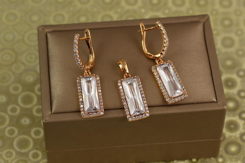 сережки довжина 3,4 см ширина 9 мм застібка англійська вага 6,48 г кулон довжина 2 см ширина 9 мм вага 2,59 г Набір Xuping Jewelry Есмі золотистий