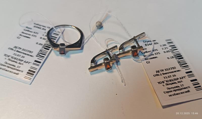 Новый оригинальный набор серебра с золотом от известного бренда Svitozar Материал - серебро 925 пробы,золото 375 пробы. Производитель - ювелирная фабрика "Свитозар", Украина. Набор совершенно новый, на изделиях бирка, стоит клеймо государственной пробирной палаты с пробой. Серьги: Вес - 2,94 Серебро 925 - 2,71 Золото 375 - 0,05 Вставки : CZ - 0,18 Каблочка: Размер - 18 Вес - 2,10 Серебро 925 - 1,99 Золото 375 - 0,02 Вставки: CZ - 0,09