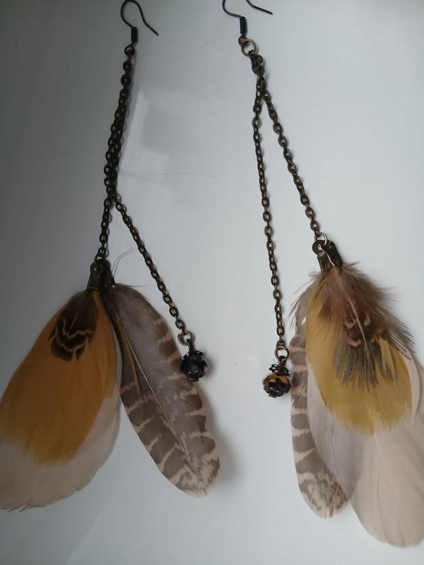 серьги : цепочка.бусина.перья- 2шт.- 15 см серьга круг- 20см украшение для волос на зажиме- 55 см