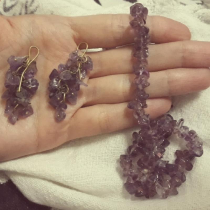 набор из натурального аметиста, смотрится очень нежным. Колье длиной 45см, серьги 5 см
