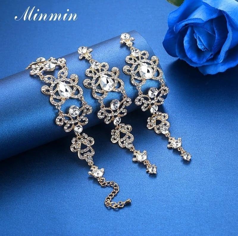 Шикарний набір сережки + браслет. В наявності білий та синій. Розміри браслету 18см+6см запас Довжина сережок 13см