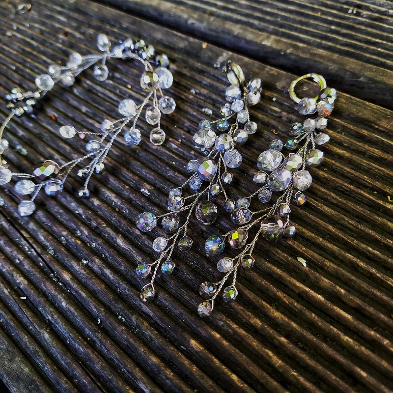 Набор создан из хрустальных бусин и ювелирной провода. Возможно и в другом цвете. Для полного комплекта могу дополнить украшением волос. Украшение выполняется только в прекрасном, творческом настроении. В каждое я вкладываю только положительные эмоции и любовь к своему делу. прогнозируй, принесет вам чуточку счастья от комплиментов окружающих.