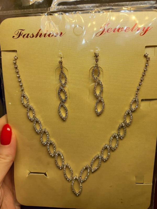 сверкают просто нереально с внутренней стороны немного потемнело длина колье в расстегнутом виде 38 +5см цепочки серьги 5 см надевала 1 раз на выпускной