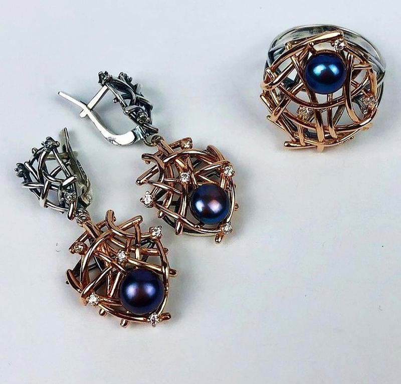 Новое украинское серебро. 925 проба. Прошло регистрацию в Государственной пробирной палате. Клеймо производителя, клеймо пробы, бирка производителя в наличии. ... Кольцо и серьги из серебра 925 пробы, украшенные позолотой, со вставками из натурального черного жемчуга (культ.) В наличии кольцо 18 размера. Другие размеры под заказ. Серьги с английским замкОм. Возможна продажа по отдельности. Дополнительные фото по запросу. С 1 января 2026 года серебряные изделия снимаю с продажи !здесь!