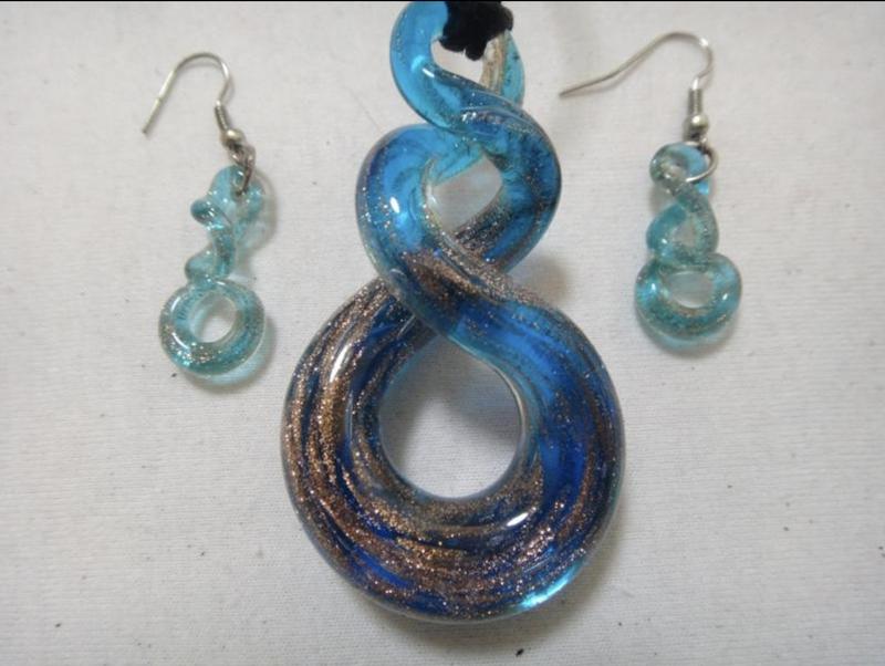 Набор, подвеска и серьги, Муранское стекло