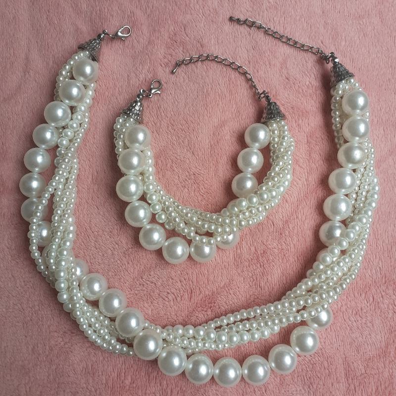 Намисто + браслет, підійде як на худеньку руку так і на повненьку є додаткові 5см запасу, штучні намистини,без дефектів.