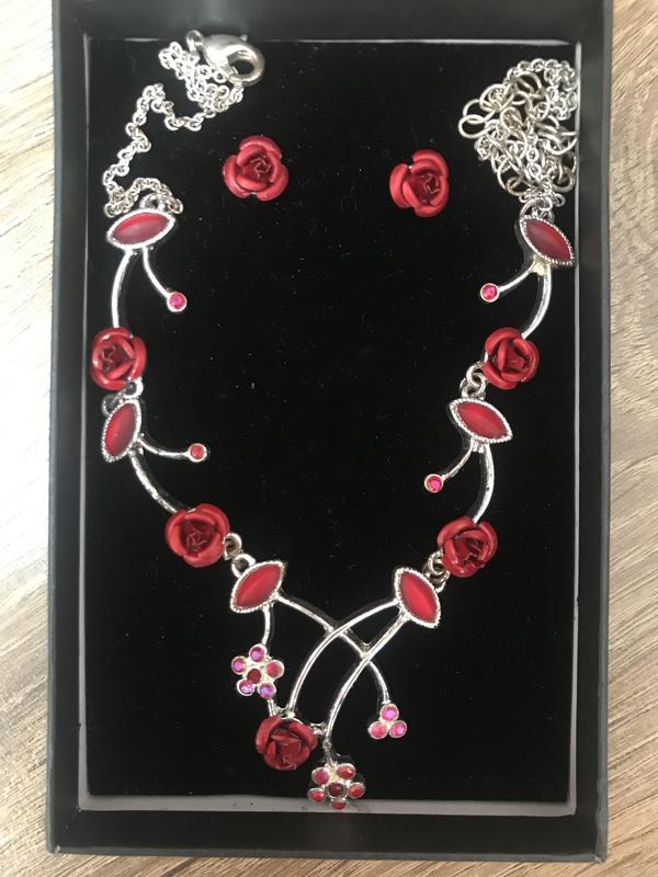 Набор сережки-гвоздики и Колье в виде роз. Очень нарядно выглядит