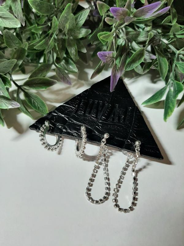 Набір із посріблених сережок- колець і сережок- ланцюжків із камінцями.Luv AJ