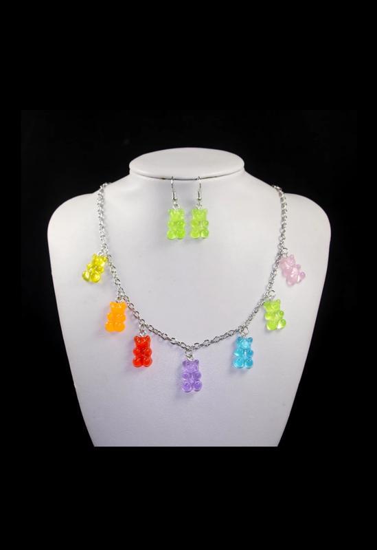 Украшения в виде мишек (набор) - в набор входит сережки салатовые и ожерелье, материал смо...
