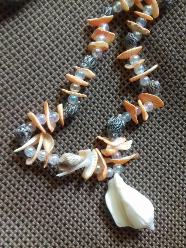 Бусы и браслет из натуральных ракушек и бусин.