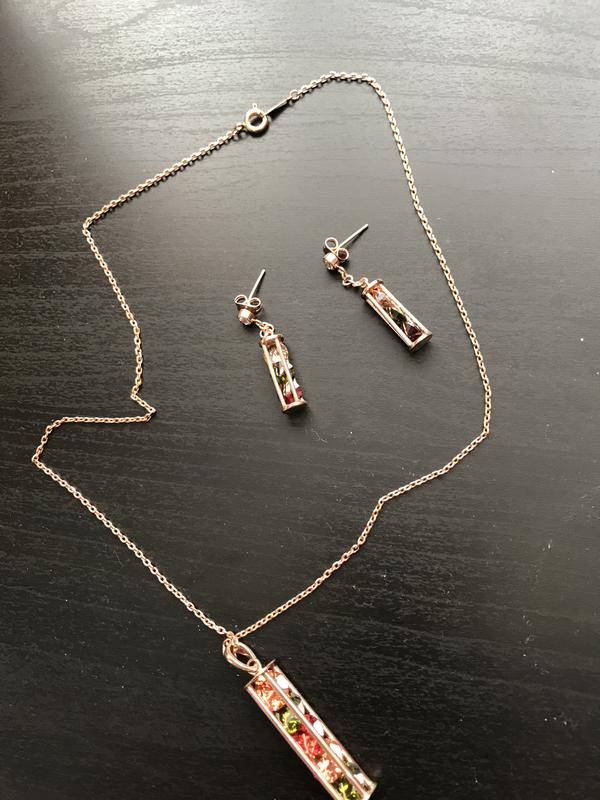 Комплект из серёжек и кулона на цепочке, дарился в фирменном пакете и коробочке сваровски( естественно выбросила) насколько это оригинал не буду утверждать!!!