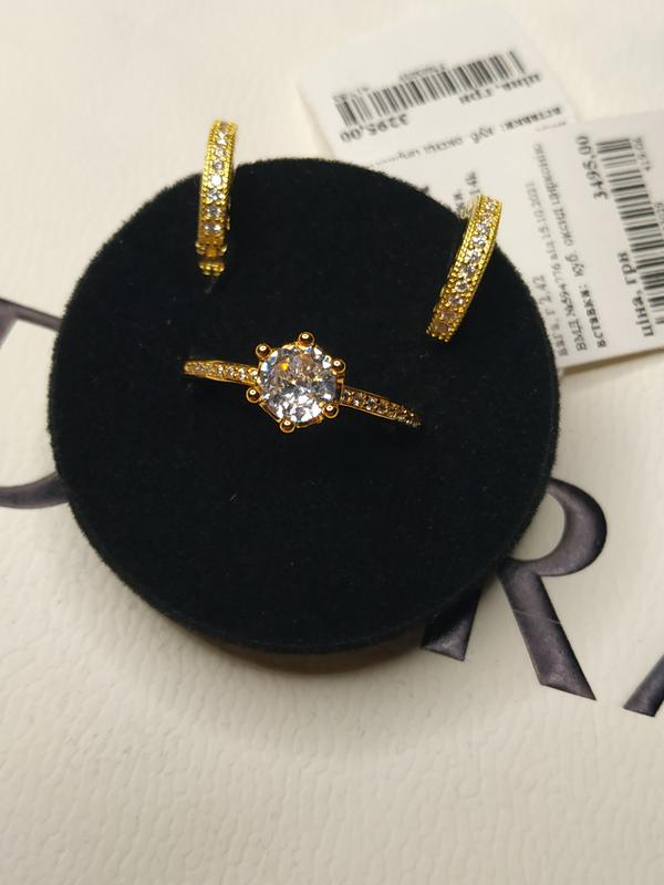 Набор кольцо и серьги пандора серебро 925 проба цирконий ale пломба бирка цвет золото круг...