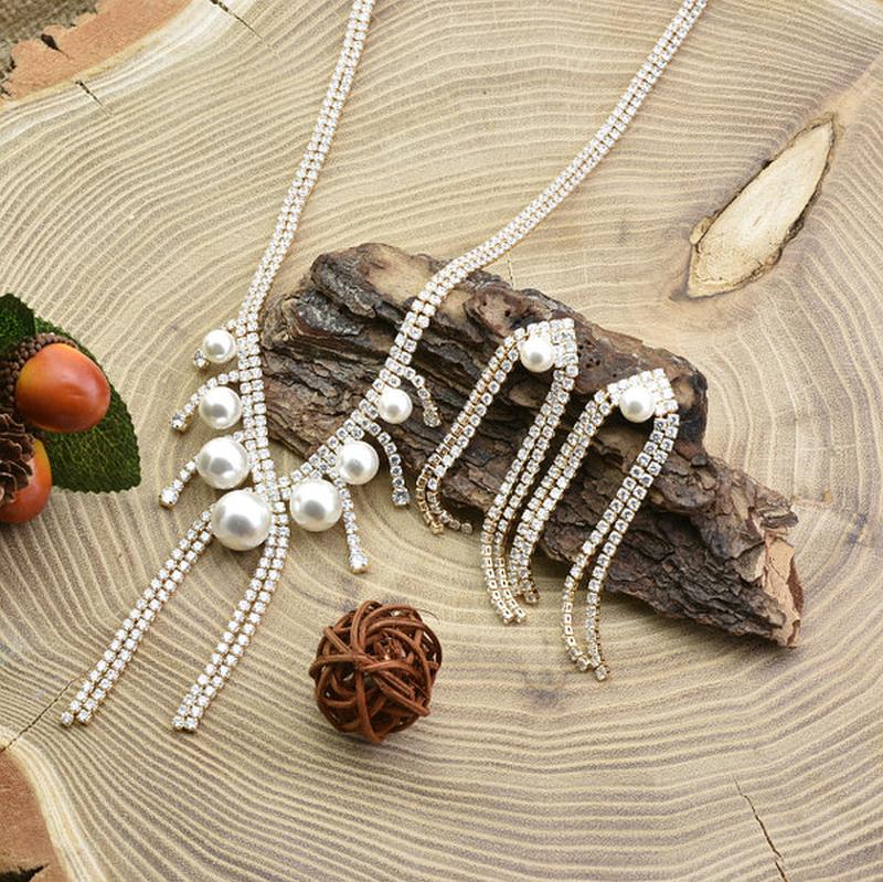 Набір Xuping кольє 42х0.6 см + сережки 70х60 мм штучний перли позолота 18К.