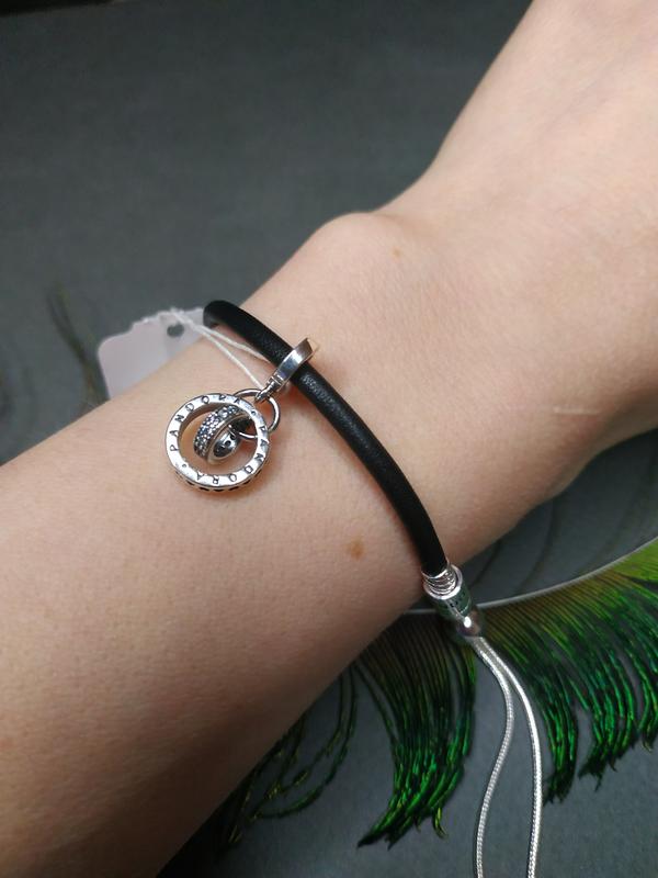 Набор шарм подвеска и браслет пандора серебро 925 проба цирконий кожа пломба бирка перевёр...