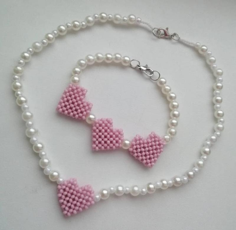 Ніжний набір з браслетом і намистом. Робимо під замовлення за вашими розмірами. Можна вибрати інший колір бісеру.