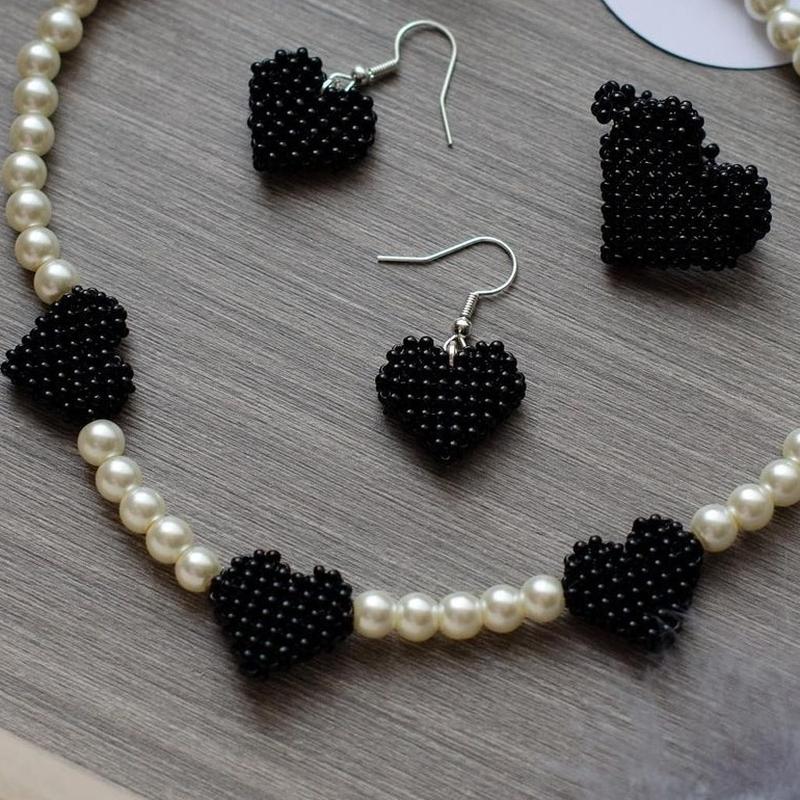 Набор из кольца, сережек и ожерелья. Делаем под заказ по вашим. Можно выбрать другой цвет.
