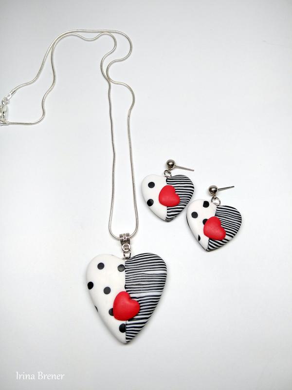 Милый и стильный комплект: кулон на цепочке и серьги. Чудесно дополнит ваш образ и не только в день Святого Валентина.