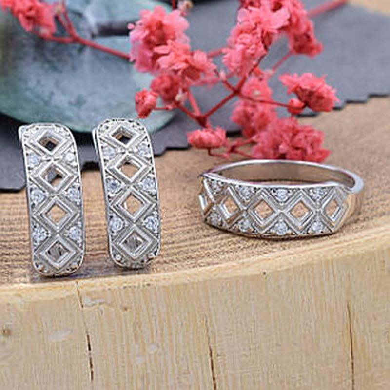 Серебряный набор Каблучка размер 17,18,19 серьги 20х7 мм вставка белые фианиты.