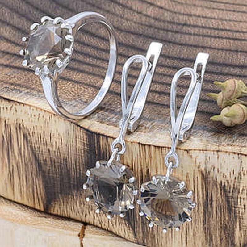 Срібний набір Каблучка розмір 18.5 сережки 30х10 мм вставка фіаніти кольору шампань.