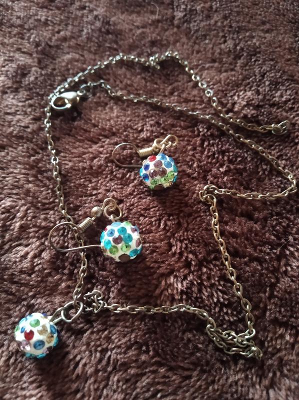 1 грн при покупке от 49 грн ❗❗❗ Если заинтересовала именно эта модель, то сообщите мне ‼️‼️‼️ Набор серьги и кулон Шарики с разноцветными стразами Металл почернел, не блестит По всем дополнительным вопросам обращайтесь в любое время