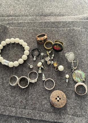 Кольца - серебро, серьги - тоже частично серебро. Серьги есть парные, есть распаровка
