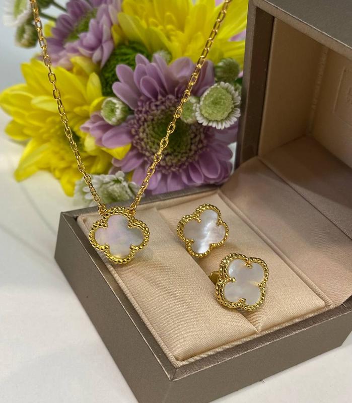 Серьги гвоздики 1,5 см Цепочка 1 клевер Позолота, все с лого 900 грн набором в мешочке