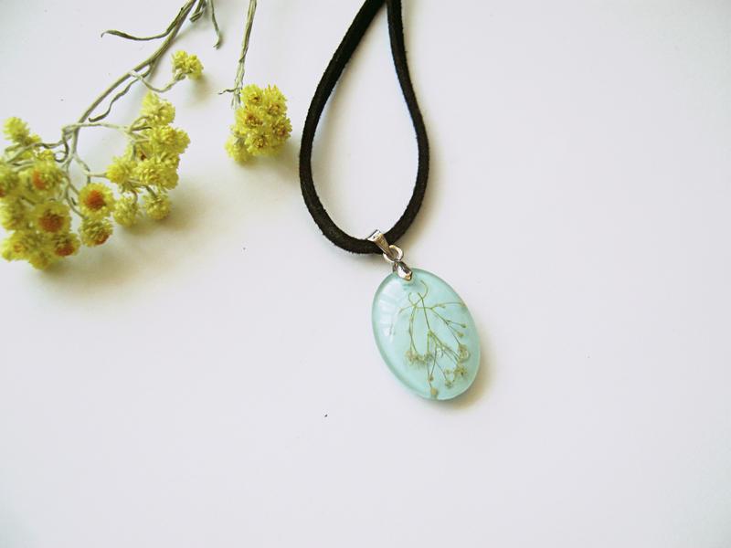 Кулон з квітами кермеку на ніжно-блакитному фоні.Розмір кулону - 25*18мм. Шнурівочка замшева. Рекомендації по догляду за прикрасами: 1. Виріб з ювелірної смоли зберігати окремо в сухому і затемненому місці. 2. Уникати потрапляння ацетону, спирту, лаку для волосся, парфумів та інших хімічних речовин. 3. Уникати різких перепадів температур (сауна, баня) 4. Одягати прикраси варто в останню чергу -парфуми, крем або лак для волосся може нашкодити глянсовому покриттю.