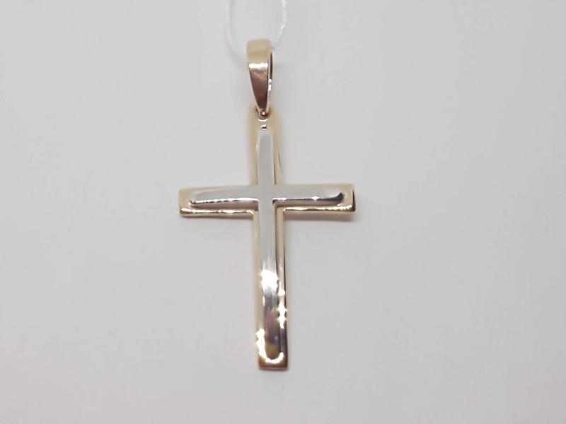 Крестик из красного и белого золота 585 пробы. Средний вес изделия 1,32г Вес конкретного изделия уточняется при подтверждении заказа
