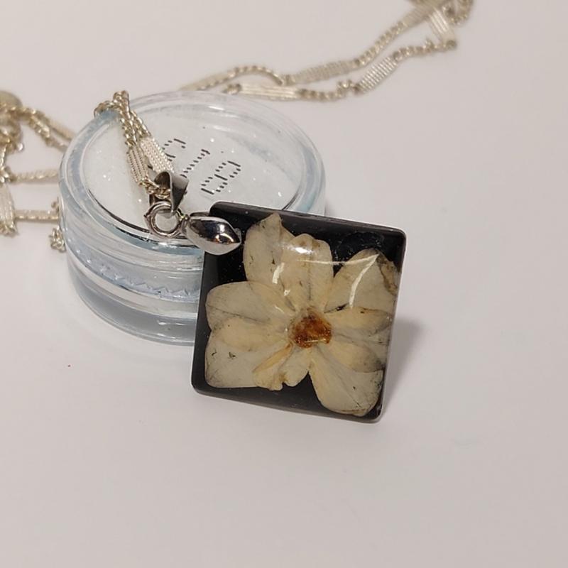 Кулон ручної роботи з ювелірної смоли та живих квітів, цепочка срібна 925 пр. 45 см