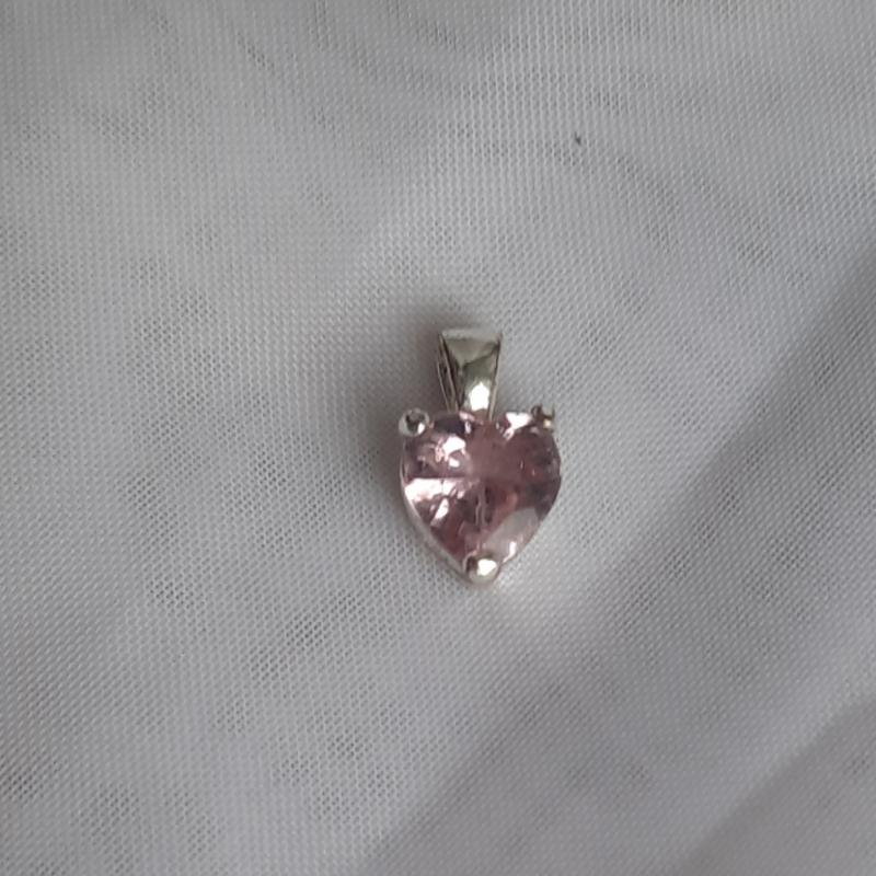 Кулончик посеребренный в форме сердечка, камень розовый. Не ношен.