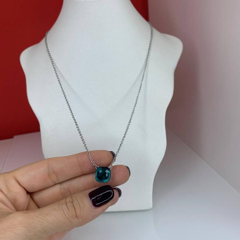 Помеллато подвеска посеребрённые с квадратным камнем зелёного цвета