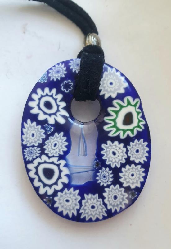Очень необычный, интересный кулон из муранского стекла! Техника millefiori, смотрится как маленький витраж :-). 4,5*3,5 см.