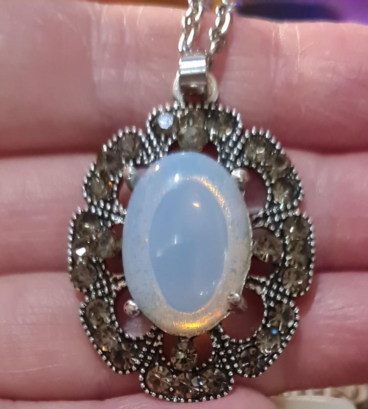 Красивый кулон, выполненный из стерлингового серебра, с большим опалитом (месячным камнем) Длина цепочки-50 см. вставка-куб.циркон.