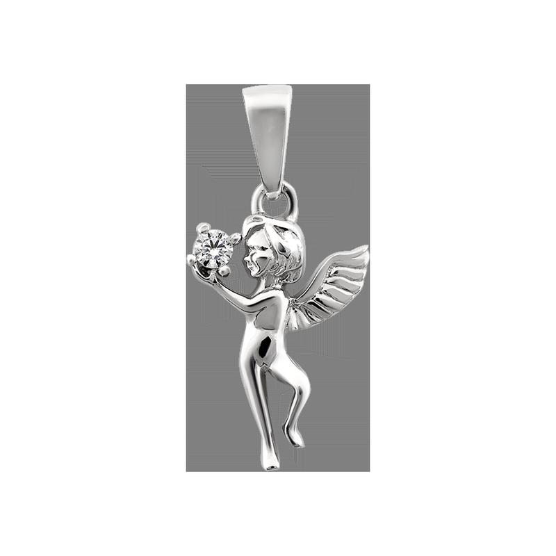 Серебряный подвес ангелочек с круглым белым фианитом