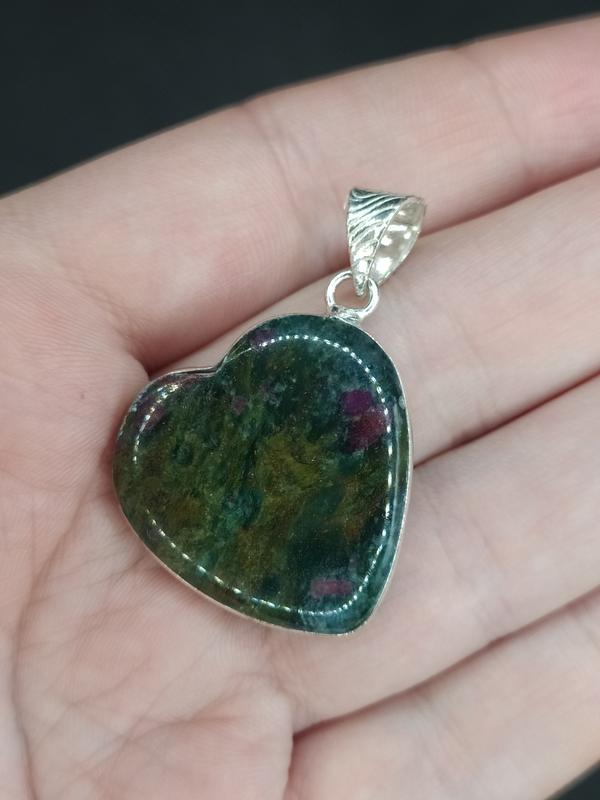 Кулон сердце рубин в фуксите