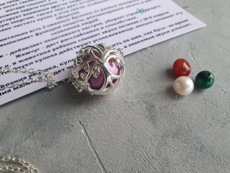 Кулон "Бола" Материал - ювелирный сплав, хорошего качества, не чернеет. Диаметр 2,5 см Кулон Бола - кулон, предназначен для беременных и кормящих мам. Также это кулон хорош для тех, кто планирует беременность. Будущая мама носит такой кулон на уровне живота, кулон издает мелодичные звуки и положительно влияет на гормональный фон, обеспечивая скорейшее зачатие. Также задача кулона - это защитная функция. Сам кулон фокусирует внимание других людей на себя. Тем самым забирая негативную энергию, также звук дает отталкивающий эффект. Рекомендовано чистить кулон у огня свечи, особенно после токсичного общения. Дополнительно есть сменные бусинки из разных минералов. Малахит - выполняет функцию защиты, рекомендовано носить в места скопления людей. Сердолик - добавляет позитивного настроя, убирает страх будущего. Жемчуг - даст расслабление и спокойствие. Гранат - носить для планирования беременности. Усиливает страсть и желание, добавляет сексуальности. Также, т.к. в животике ребенок слышит звуки начиная с 20-й недели беременности. Звуки кулона действуют успокаивающе, малыш запомнит эту мелодию. После рождения ребенка, кулон можно носить на шее, как бусы - во время кормления малышу будет чем занять ручки, а знакомые звуки успокоят.