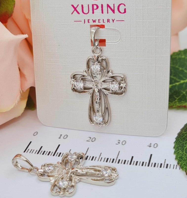 кулон крестик родовый, двойной, с распылением и камушками, 2,5*2см, Xuping Код товара 210142 Гэри уточнять наличие