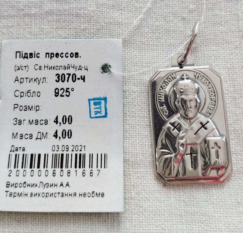 Підвіс срібний святий микола чудотворець 3070 чорнений