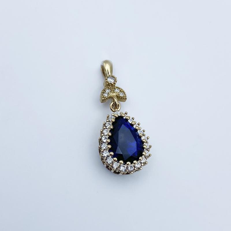 Кулон серебряный с сапфиром и кубическим цирконием "роксолана" 5,11 г