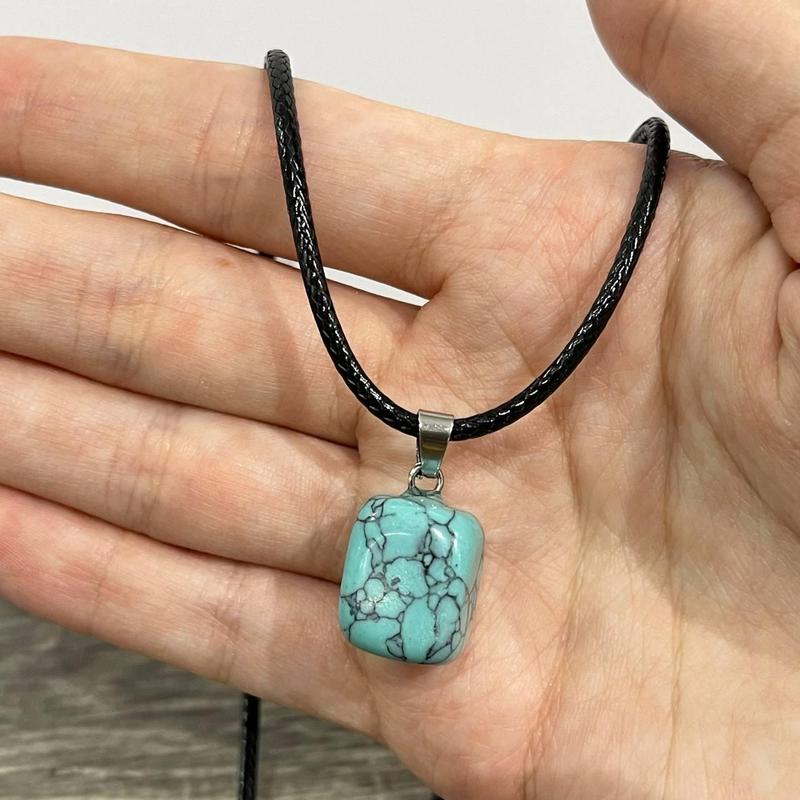 Натуральный камень бирюза - кулон талисман в форме "мини блок" на шнурке - оригинальный по...